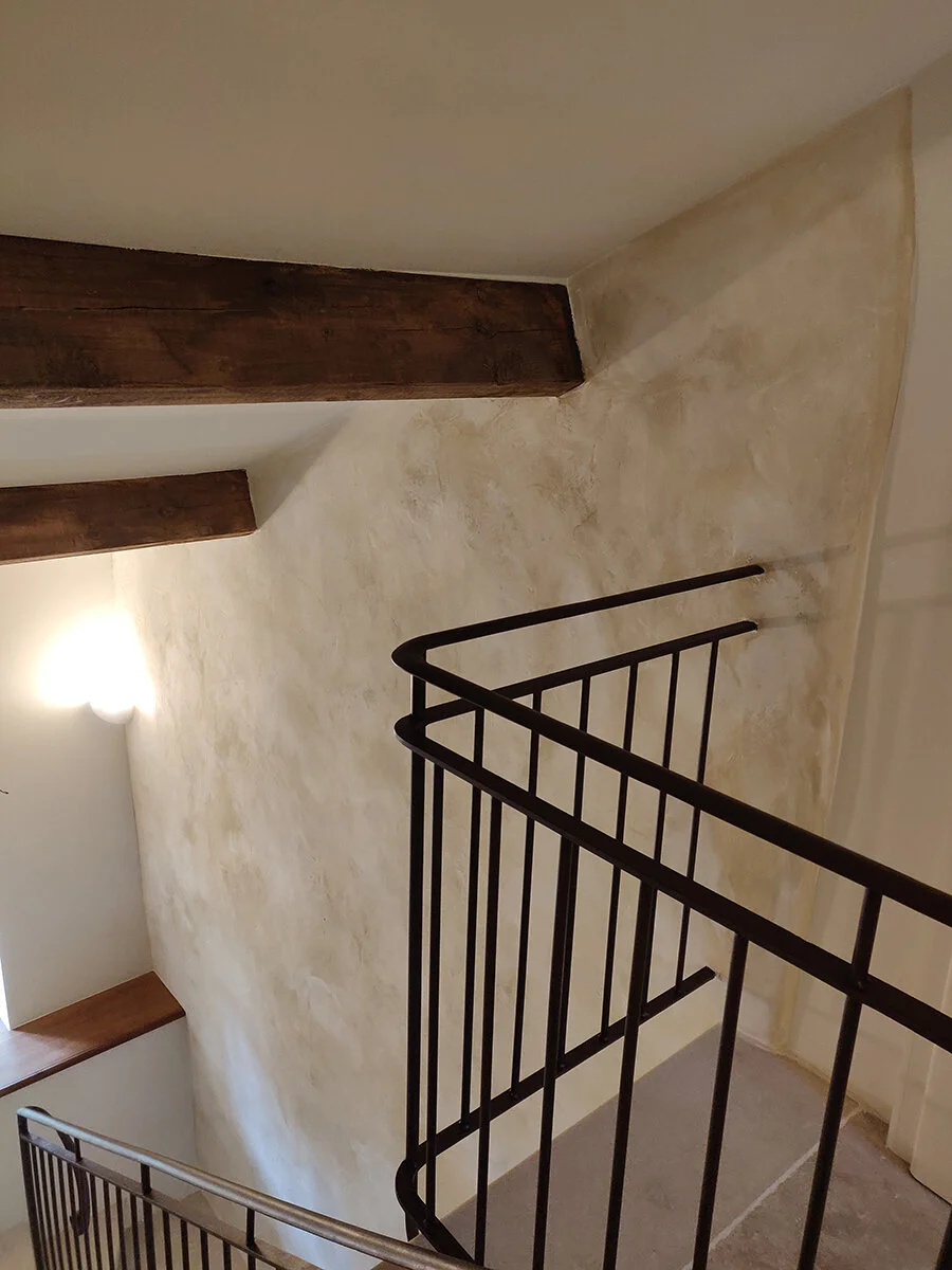Les vieux murs en Provence étaient souvent peints à la chaux. Ces techniques ont peu à peu été abandonnées au profit des résines synthétiques.